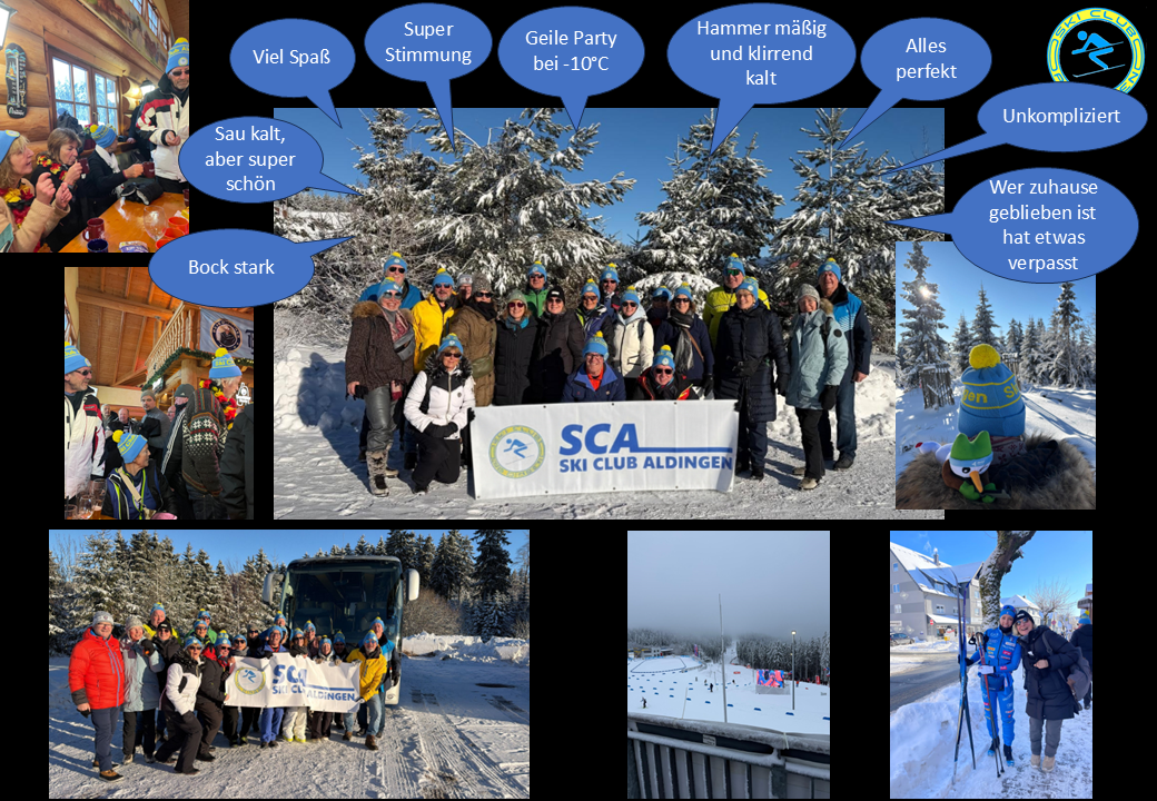 Vielleicht doch noch ein paar nüchterne Informationen zur Reise: Busfahrt am Samstag hin, Sonntag zurück, Besuch Biathlon Weltcup mit spannenden Wettkämpfen im ausverkauften Stadion mit toller Stimmung bei eisiger Kälte, Hotel und Abendessen in Gotha.